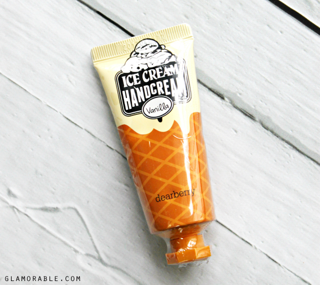 DEARBERRY Ice Cream Hand Cream 04 Vanilla – Yum! This delicious mini hand cream comes in a tiny squeeze tube that’s perfect for carrying around in a purse without adding extra bulk. I don’t think the formula is anything extraordinary, but at least it smells like vanilla cupcakes that brighten up the day.
