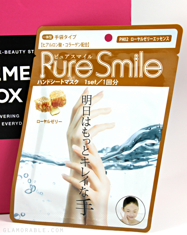 I didn’t use it yet, but I’m a bit confused. This is a sleepytime box, so does that mean Memebox expects me to sleep with these things on my hands? I feel like it would be counter-productive, and instead of getting fabulous skin and moisturized cuticles, I’d wake up with messy sheets and pruney paws. I bet they would work great before bed, so I can slap on an extra-nourishing hand cream and let it work its miracles overnight. By the way, Pure Smile brand is probably my favorite brand of cheap Korean masks.