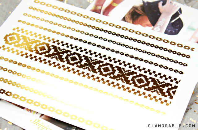 Skin Jewel Tattoos in Empire – I thought it was an odd choice to include these temporary tattoos in a January box, I feel like they would have been more appropriate for one of the Summer boxes, but nonetheless it’s clearly a hip item and we all saw magazines and online articles promoting the look of metallic tats.